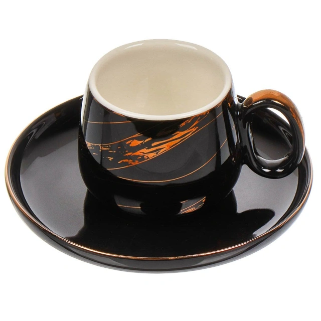 Premium Design for Commercial and Home Use The Ceramic Cup & Saucer Set combines functionality with sophisticated aesthetics. Each 90ML cup features a striking black finish with gold accents, paired with a matching saucer, designed to elevate table settings in cafes, hotels, and homes. As a leading ceramics manufacturer, we ensure each piece meets high standards of visual appeal and practicality, making it suitable for daily use and special occasions.